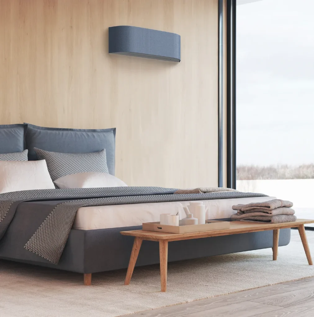 Tiesitkö, että ilmalämpöpumppu on mahdollista sovittaa muuhun sisustukseen tai häivyttää huomaamattomaksi? Toshiba Haori -ilmalämpöpumppu on saatavilla tehtaalta vaalean- ja tummanharmaina kankailla, mutta sen irrotettavaan etupaneeliin voi myös suunnitella ja ompeluttaa oman kankaan.